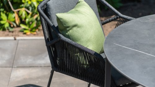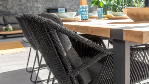 Die 4 Seasons Accor Rahmen wird mit natürlichen Anthrazit oder Mid Grey farbige Kunststoff Faser in Form von Schnüre (Rope) abgedeckt. Die Kissen kommen in einer schönen anthrazit und grau farbenen Olefin-Stoff. Durch die Widerstandsfähigkeit des Rope sind Dicke Kissen nicht mehr benötigt sparen Sie Stauraum und Múhe.