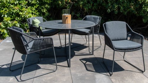 Der fragile und minimalistische Rahmen ist aus Edelstahl hergestellt, so dass Festigkeit und lebensdauer es mehr als ausreichend behaupt sind. Der Rahmen ist mit einem Anthrazit farbige pulverbeschichtgung fertig gemacht ....zusammen mit der Rope gibt dies eine Harmonie von Farben .Das Accor Dining von 4SO kann mit der Derby, Alto, Heritage und basso Tischserie kombiniert werden. Neben dem Accor-Gartenset gibt es auch ein 4 Seasons Accor-Lounge-Set. Die Accor Dining ist verfügbar in 2 Farben Rope: Anthrazit und Mid Grey.