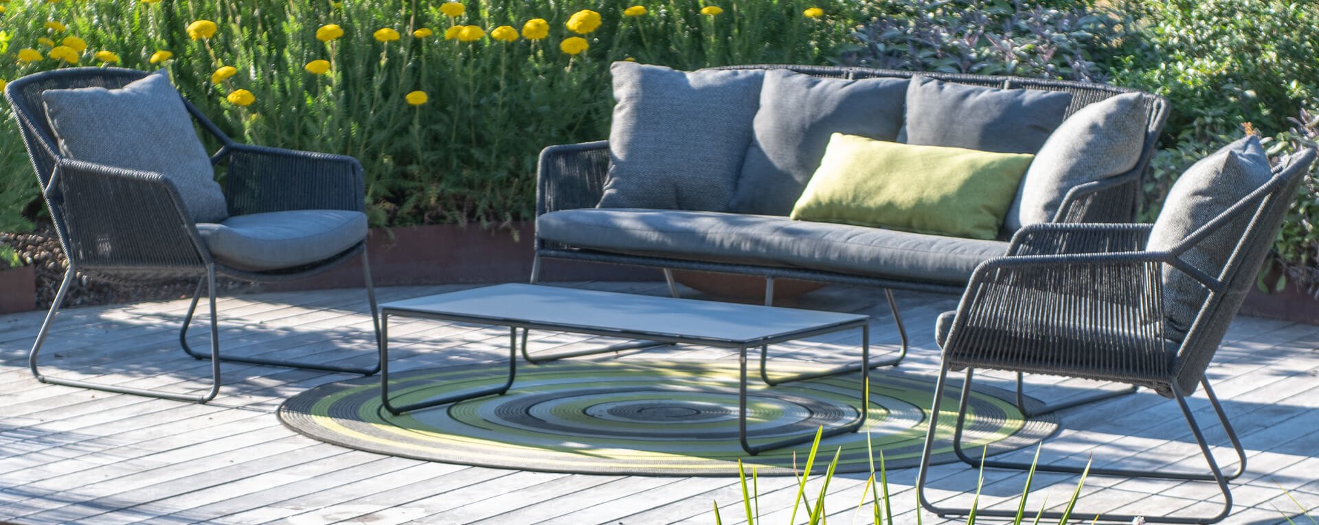 Die 4 Seasons Accor Rahmen wird mit natürlichen Anthrazit farbige Kunststoff Faser in Form von Schnüre (Rope) abgedeckt. Die Kissen kommen in einer schönen anthrazit und light grey farbenen Olefin-Stoff. Die 4SO Accor Gartenmöbel verfügen über dicke und sehr bequeme Kissen mit Bezügen aus Olefin-Material, das extrem witterungsbeständig und langlebig ist. Einfach den Reißverschluss öffnen und bei 30 Grad waschen / trocknen.