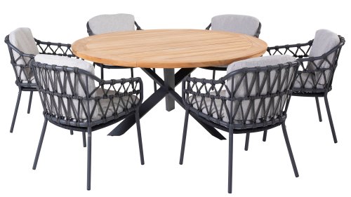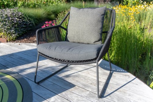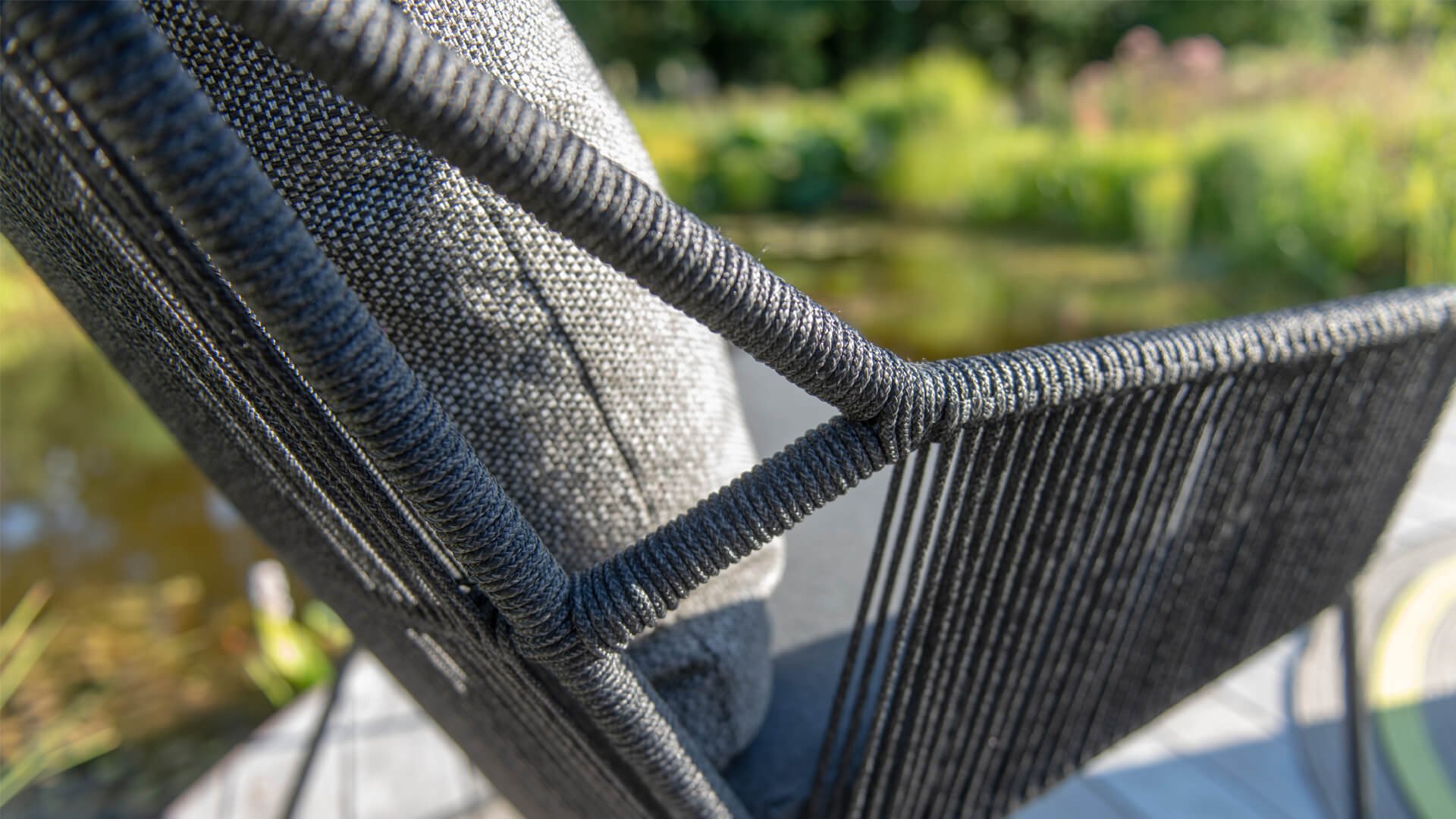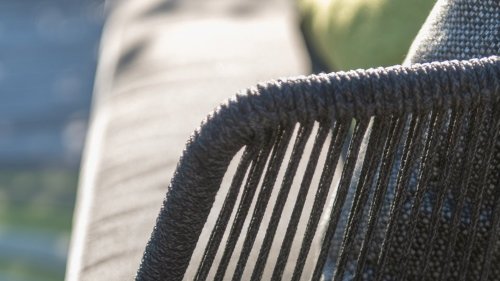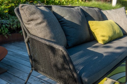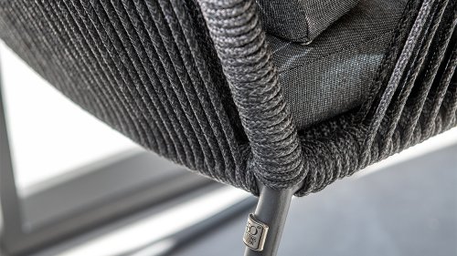 Der minimalistische Rahmen ist aus Aluminium und das Untergestell ist aus Anthrazit farbig pulverbeschichtet Edelstahl hergestellt, so dass Festigkeit und lebensdauer es mehr als ausreichend behaupt sind. Die dicken bequeme anthrazit und graue farbigen Kissen, zusammen mit der Anthrazit Rope gibt dies eine Harmonie von Farben mit Atmosphäre, die perfekt zu jedem Garten passt.