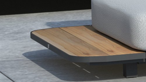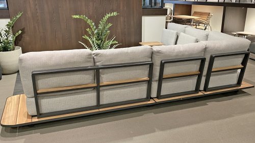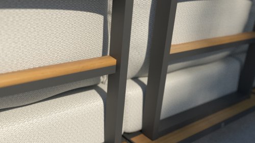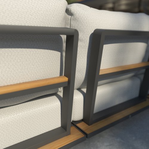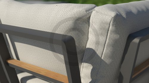 Aufgrund der durchbrochenen Rückenlehnen mit Teakholzakzenten ist es nicht schlecht, auf die Rückseite dieser Lounge zu schauen. Unter den Sitzkissen befindet sich ein Boden aus Textilien, der verhindert, dass sich diese Lounge hinsetzt. Dadurch bleibt der Komfort immer gleich. Die Teakholz-Seitenteile erstrecken sich bis nach hinten, wo Sie den zusätzlichen Wein oder das Bier mit etwas Geschicklichkeit verstecken können. Kurz gesagt: Die 4 Seasons Arcade Lounge vermittelt Ihnen das Gefühl, dass es wirklich ein Faulenzen und Entspannen gibt!