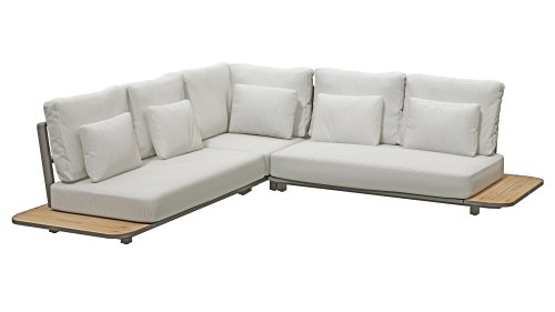 Das 4 Seasons Outdoor Arcade Lounge Set ist ein neues 2021 Lounge Set der niederländischen Topmarke 4SO. Wer auf der Suche nach luxuriösem Leben im Freien ist, sollte unbedingt die Arcade-Plattformlounge besuchen und erleben. Das Arcade-Lounge-Set vermittelt Ihnen das Premium-Gefühl, das Sie suchen. Das Arcade-Ecksofa ist ein Plattform-Loungesofa aus anthrazitfarbenem Aluminium und strapazierfähigem Teakholz. Die Allwetterkissen aus dem leichten Stoff bilden einen schönen Kontrast zum Ganzen. Die Kissen sind extra dick und bieten Ihnen einen bequemen Sitz. Dank der zusätzlich mitgelieferten Lendenkissen sitzen Sie unabhängig von Ihrer Körpergröße garantiert gut. Darüber hinaus sorgen diese zusätzlichen Kissen dafür, dass Sie in der Ecke entspannen und Komfort von allen Seiten genießen können.