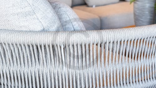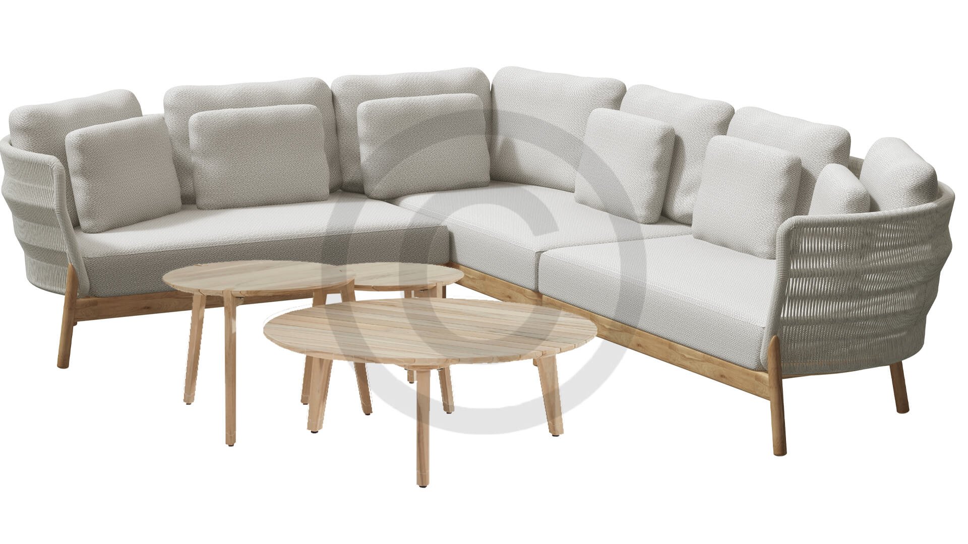 Das Avalon Ecksofa von 4 Seasons Outdoor verwendet weiche, harmonische Töne und ein angenehm rundes Design. Super dicke, bequeme Kissen und eine warme Teakholzbasis verstärken das vertraute und warme Image des Sofas. Die 4 Seasons Outdoor Avalon Lounge (Frozen) ist eine wunderschöne Lounge mit hellgrauen Kissen und Teakbeinen. Modular, also für die Einrichtung jedes Gartens geeignet. Die Lounge der Avalon-Serie von 4SO ist eine Art pure Schönheit. Das Erscheinungsbild ist exquisit und das Design besteht aus hochwertigen Materialien. Dieses Rope Lounge Set ist sehr komfortabel, teilweise aufgrund der Allwetter-Gartenkissen. Der schöne hohe Rücken bietet guten Halt und der Sitzkomfort wird sehr gelobt. Das Avalon Lounge Set von 4SO ist von allen Seiten wunderschön und auf jeden Fall das Geld wert! 4 Seasons Outdoor Avalon Lounge-Set mit vollem Teakholzboden und Rücken und Armlehnen mit Seilgeflecht in gefrorenen und luxuriösen grauen Kissen. Dies ist wirklich ein Loungesofa mit einem schönen Aussehen.