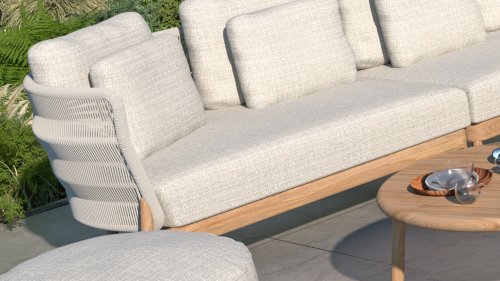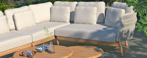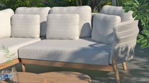Diese Farbe passt perfekt zum natürlichen Aussehen von warmem Teakholz, das der Basis hinzugefügt wurde. Das Allwetterkissen macht es noch perfekter und sorgt für den besten Fahrkomfort. Avalon ist ein modulares Lounge-Set. Durch die Kombination mit den verfügbaren Modulen können Sie viele Konfigurationen erstellen, die Ihren spezifischen Anforderungen entsprechen. Um den guten Zustand und die Farbe von Teakholz zu erhalten, empfehlen wir die Verwendung von 4SO-Wartungsprodukten.