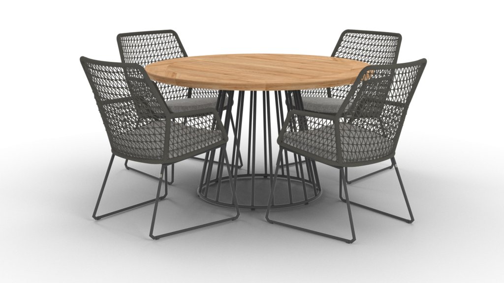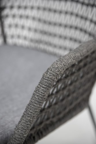 Mit der 4SO Babilonia Dining Collection können Sie Gartenmöbel in vollen Zügen genießen. Sie zeigen ein außergewöhnliches Design und sind handgefertigt. Geknotetes Seil und subtile Rahmen, die zusammenwirken, sorgen für fantastischen Komfort. Die Aluminiumbasis hat die sog. "Schlittenbein"-Form, die in Kombination mit dem schönen hellbraunen Geflecht einen modernen und dennoch "warmen" Look ergibt. Die runden Formen halten dieses Design vollkommen im Gleichgewicht.