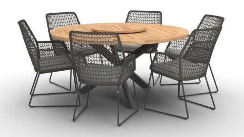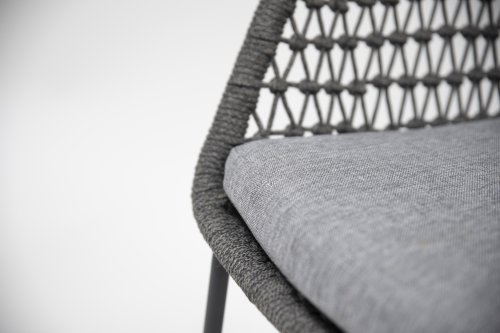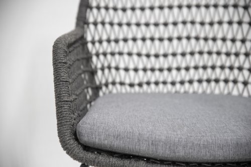 Mit der 4SO Babilonia Dining Collection können Sie Gartenmöbel in vollen Zügen genießen. Sie zeigen ein außergewöhnliches Design und sind handgefertigt. Geknotetes Seil und subtile Rahmen, die zusammenwirken, sorgen für fantastischen Komfort. Die Aluminiumbasis hat die sog. "Schlittenbein"-Form, die in Kombination mit dem schönen hellbraunen Geflecht einen modernen und dennoch "warmen" Look ergibt. Die runden Formen halten dieses Design vollkommen im Gleichgewicht.