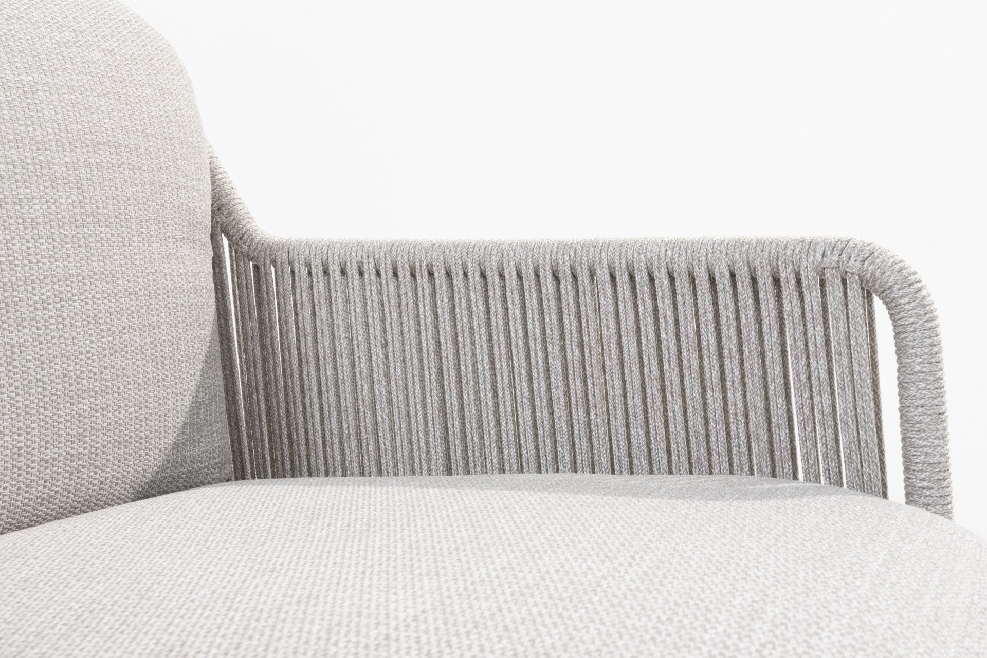 Prachtvolle Formen fließen durch Bernini, einen 4 Seasons Outdoor Lounge-Sessel mit wunderschönem Design. Die Rücken- und Armlehnen sind aus Seil (Rope) gefertigt. Seil ist ein schönes weiches Material mit einem modernen Look. Das Seil (Rope) ist sehr stark, UV-beständig und hat eine sehr geringe Zugfestigkeit. Das Seil kann auch wenig oder keine Feuchtigkeit und Schmutz aufnehmen.
