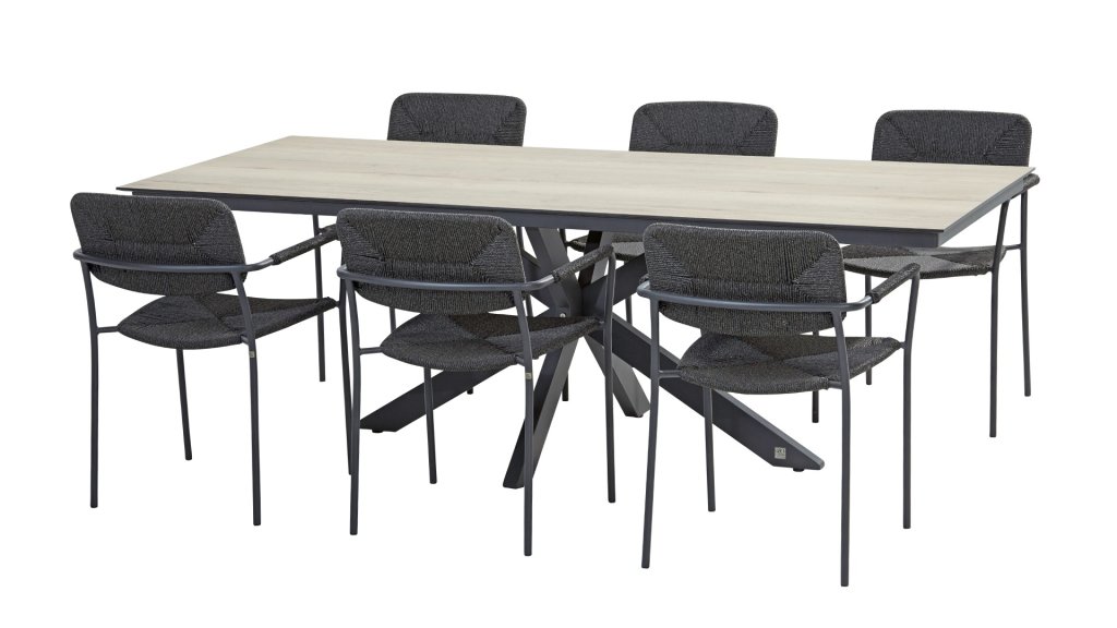 1 x 4Seasons Minerva Tisch 220x95cm Anthrazit-HPL Teak Pattern