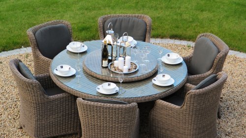 Bei der hochwertigen Esstischgarnitur der 4SO Brighton Serie wurde auf jedes Detail geachtet. Die Kissen sind wetterfest und der Rahmen ist langlebig und robust. Die Rückenkissen sind mit speziellen Dacron-Schaum gefüllt. Das wunderschöne 5 mm Hularo® Provence Gewebe ist extrem stark und farbecht. Ein Klassiker, mit dem Sie lange in Ihre Garten Freude haben werden.
