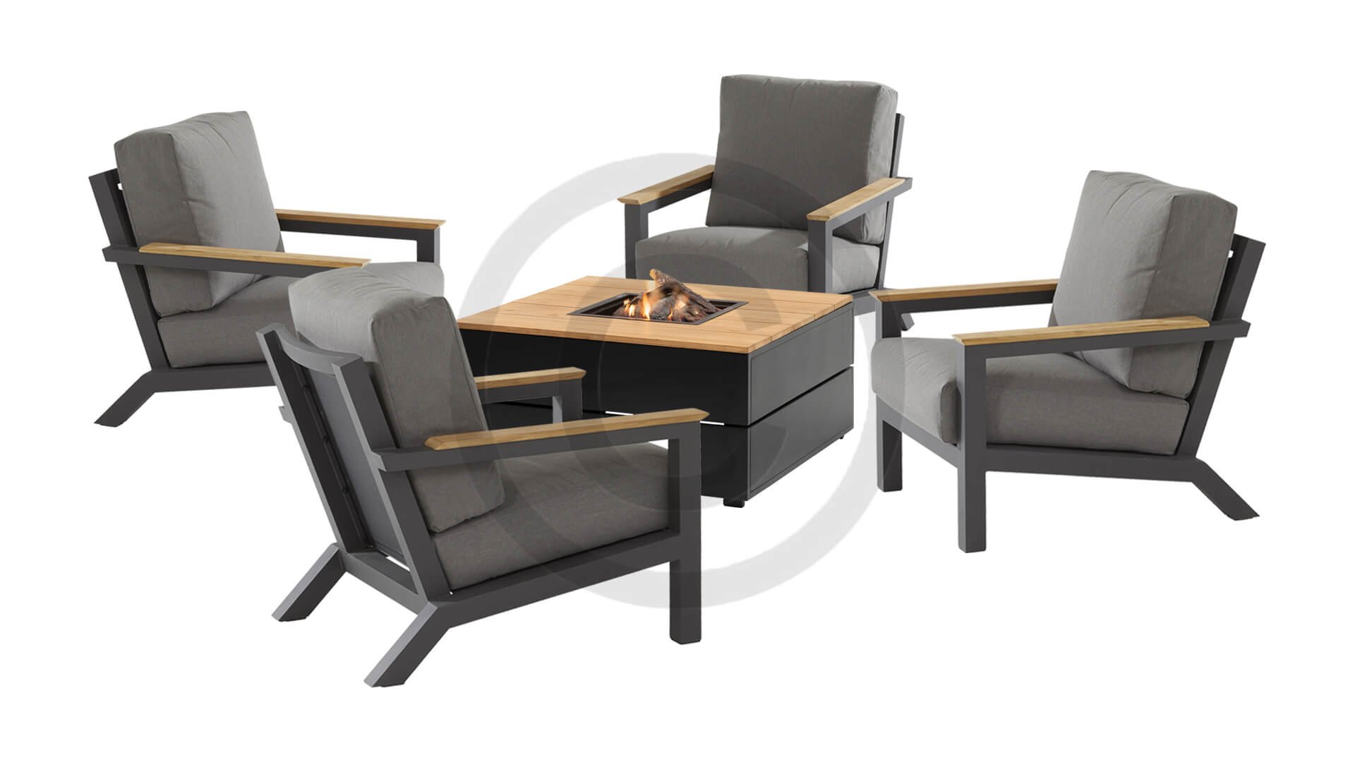 1 x Cosipure 100 Feuertisch Alu Black 100x100xH47cm