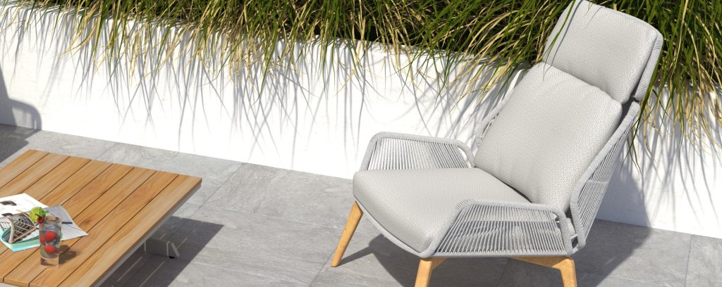 Dieser 4SO Carthago ist in 2 verschiedenen Versionen erhältlich. Eine mit platingrauem Rope und Pulverbesichtet Edelstahlbeinen. Sie betrachten den Karthago mit dem Rope in der Farbe "Frozen" grau. Diese frische Farbe ist modern und verleiht diesem Stuhl einen luxuriösen Look. Das fest gespannte Seil erzeugt ein vertikales Muster, das besonders auf der Stuhllehne sichtbar ist. Die passenden Kissen in der gleichen Farbe sind wunderbar dick und garantieren viele entspannende Stunden.
