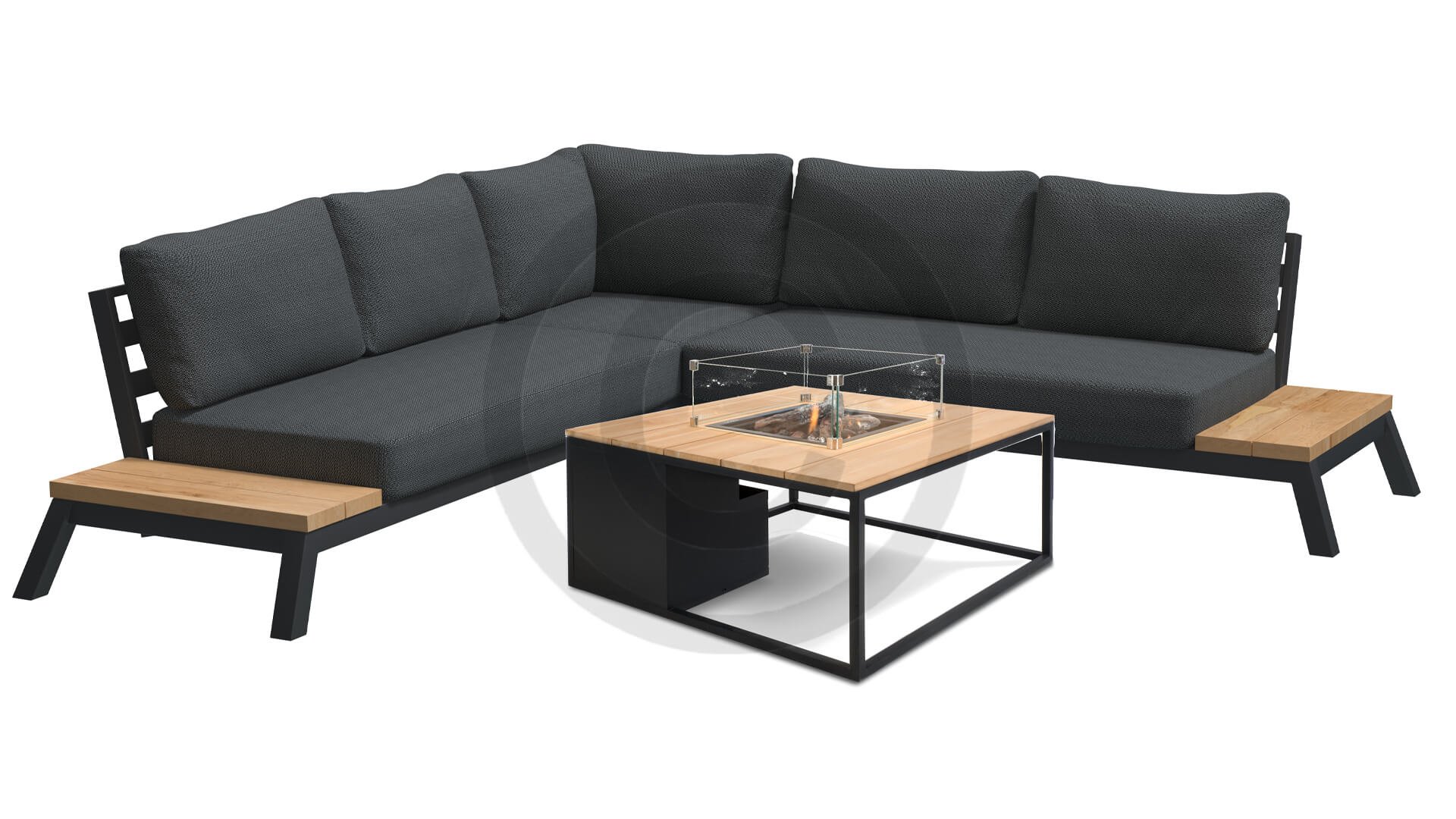 1 x CosiLoft Feuertisch Alu Black/Teak 100x100xH47cm