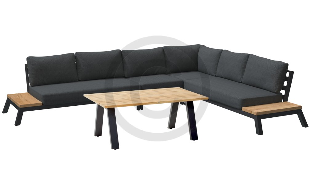 | Materialien Loungegruppe | Pulverbeschichtet Aluminium/Stahl, Teak |