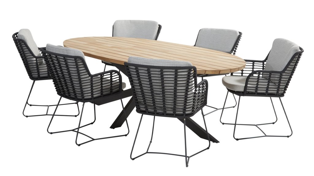 1 x Taste Prado Ellips Tisch 240x115cm Teak-Alu Anthrazit