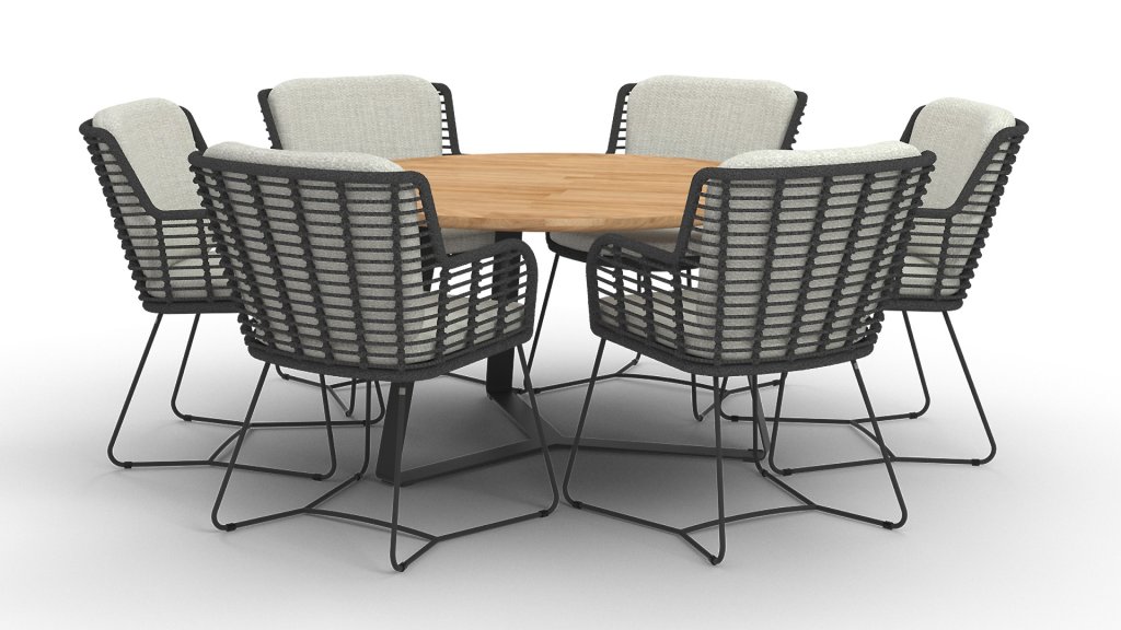 Hergestellt aus den besten Materialien, hergestellt mit Leidenschaft. Diese Essserie hat nicht nur Flair, sondern auch einen hervorragenden Sitzkomfort. Das dicht gewebte Seil besteht aus einem Kunststoffseil, das einen Kern enthält, der es farbecht, schimmel- und UV-beständig macht. Die Kissen bestehen aus Olefin, das farbecht, bequem und wasserabweisend ist. Die Kombination der Kissen zusammen mit einer abgewinkelten Rückenlehne sorgt für einen bequemen Sitz. Ein Design von 4 Seasons, das eine Augenweide ist. Der Stuhl ist auch in folgenden Farben erhältlich: Green & Frozen.