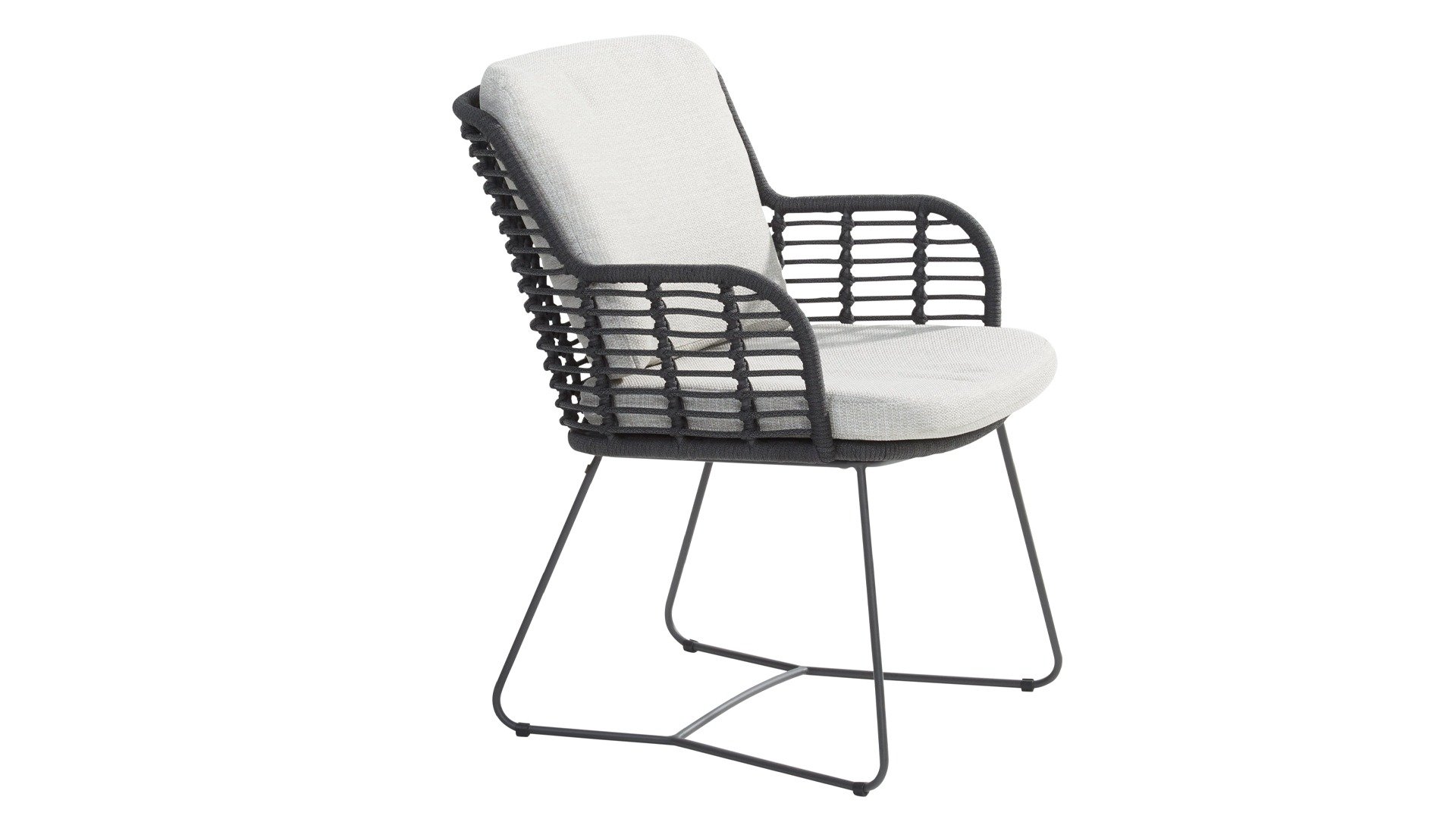 Hergestellt aus den besten Materialien, hergestellt mit Leidenschaft. Diese Essserie hat nicht nur Flair, sondern auch einen hervorragenden Sitzkomfort. Das dicht gewebte Seil besteht aus einem Kunststoffseil, das einen Kern enthält, der es farbecht, schimmel- und UV-beständig macht. Die Kissen bestehen aus Olefin, das farbecht, bequem und wasserabweisend ist. Die Kombination der Kissen zusammen mit einer abgewinkelten Rückenlehne sorgt für einen bequemen Sitz. Ein Design von 4 Seasons, das eine Augenweide ist. Der Stuhl ist auch in folgenden Farben erhältlich: Frozen & Antracite.
