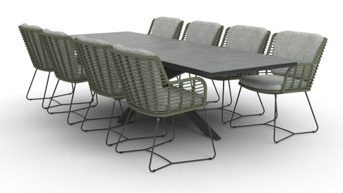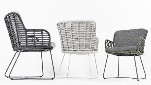 Der Rahmen des Fabrice 4SO Dining fließen in einander und dies wird fertiggemacht mit dem einzigartige Rope Geflechte. Rückenlehne und Sitzfläche ist mit dieser starken Rope geflochten und gibt ein fest, aber bequem Sitzen. Die schönen Rahmen sind aus Aluminium. Ein schönes, flaches Seil (Rope) mit einem weichen und komfortablen Aussehen wurde in den Rahmen eingewebt. Die runden und Eckige Formen erhalten das Gleichgewicht dieses modernen Designs. Der Rahmen ist eine spielerische und zerbrechlich Zusammenspiel von glatten Linien, die wieder zusammen kommen und auseinander gehen, ein fest für die Augen!