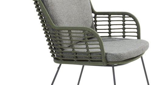 Die 4Seasons Fabrice Rahmen wird mit natürlichen Green farbige Kunststoff Faser in Form von Schnüre (Rope) abgedeckt. Die Kissen kommen in einer schönen Anthrazit farbenen Olefin-Stoff. Die 4SO Fabrice Gartenmöbel verfügen über bequeme Kissen mit Bezügen aus Olefin-Material, das extrem witterungsbeständig und langlebig ist. Einfach den Reißverschluss öffnen und bei 30 Grad waschen / trocknen.