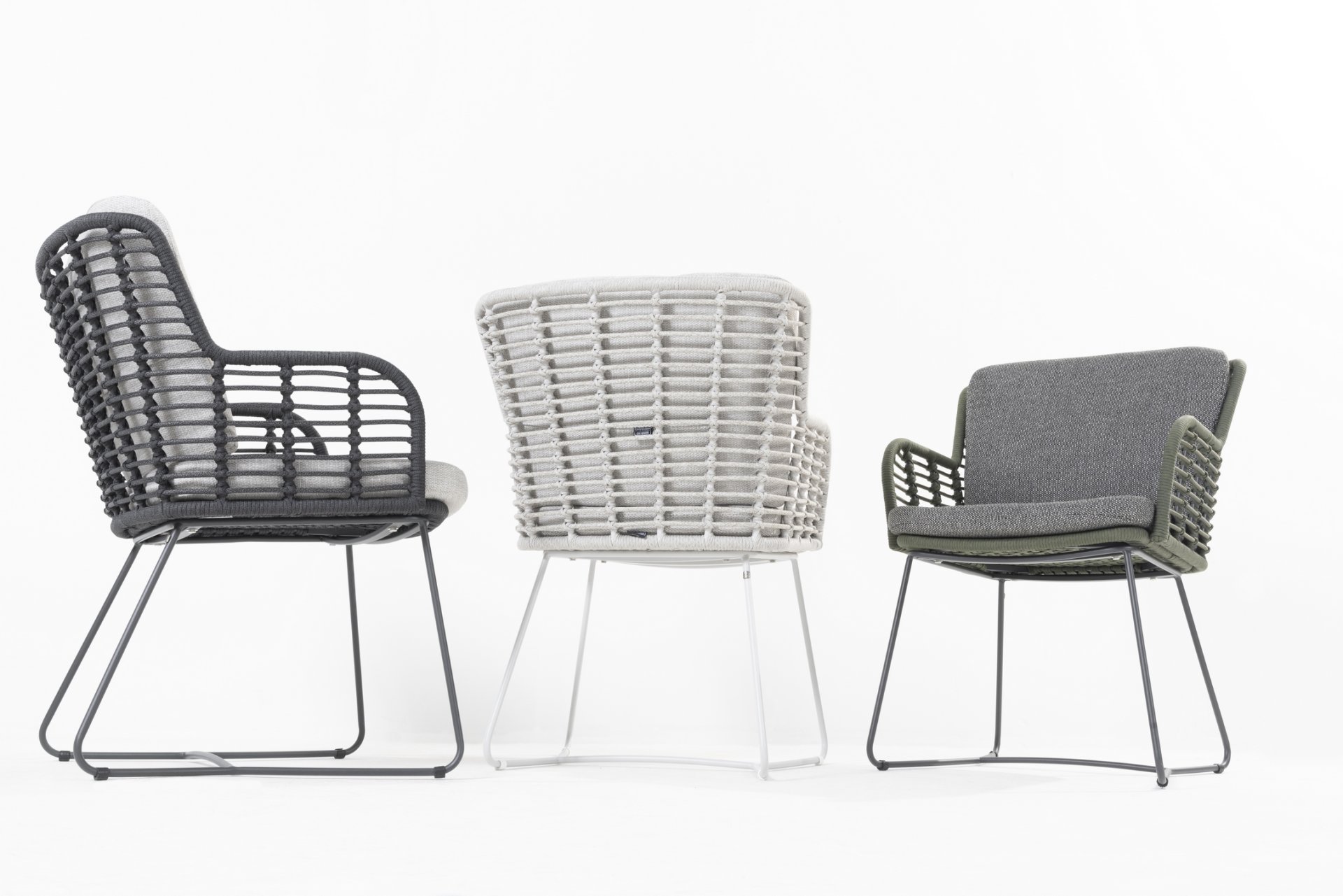 Hergestellt aus den besten Materialien, hergestellt mit Leidenschaft. Diese wunderschöne Essserie von 4Seasons Fabrice hat nicht nur Flair, sondern auch einen hervorragenden Sitzkomfort. Dieses Modell ist in Anthrazit, Frozen & Green erhältlich. Die verwendeten Materialien sind Kunststoffseile, Olefin und Aluminium. Das Kunststoffseil enthält einen Kern, der für Farbechtheit sorgt und es schimmelresistent macht. Olefin macht die Kissen außerdem farbecht und wasserabweisend, zudem fühlt sich der Stoff angenehm an. Die Basis des Fabrice besteht aus pulverbeschichtetem Aluminium, um das schlanke Design zu vervollständigen!