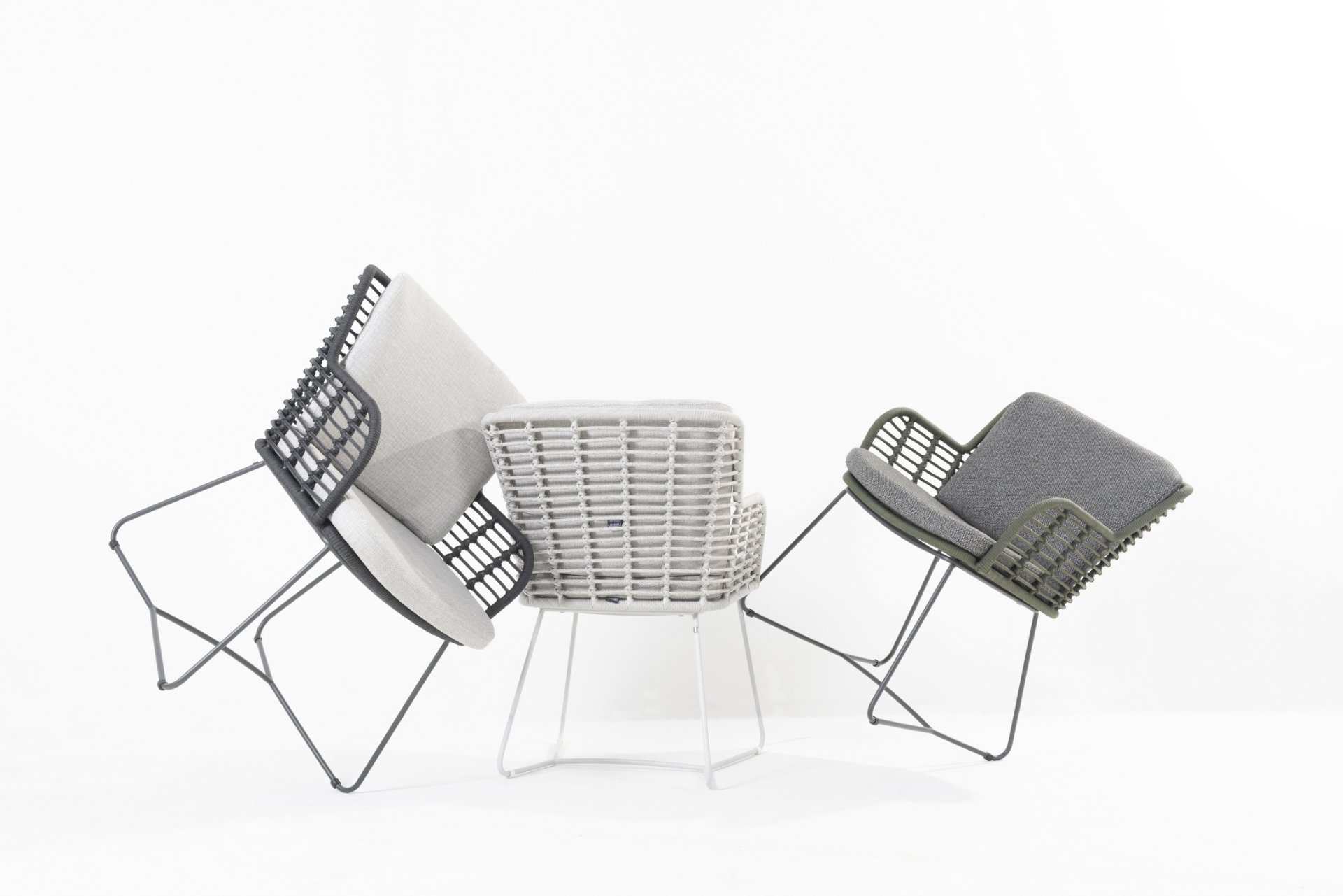 Hergestellt aus den besten Materialien, hergestellt mit Leidenschaft. Diese wunderschöne Essserie von 4Seasons Fabrice hat nicht nur Flair, sondern auch einen hervorragenden Sitzkomfort. Dieses Modell ist in Anthrazit, Frozen & Green erhältlich. Die verwendeten Materialien sind Kunststoffseile, Olefin und Aluminium. Das Kunststoffseil enthält einen Kern, der für Farbechtheit sorgt und es schimmelresistent macht. Olefin macht die Kissen außerdem farbecht und wasserabweisend, zudem fühlt sich der Stoff angenehm an. Die Basis des Fabrice besteht aus pulverbeschichtetem Aluminium, um das schlanke Design zu vervollständigen!