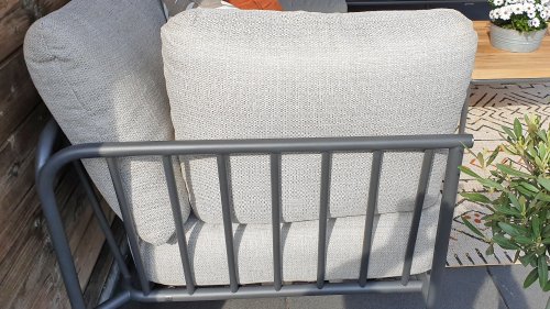 Die 4Seasons Figaro Rahmen sind fragile und minimalistisch aber aus strarken Aluminium hergestellt, so dass Festigkeit und lebensdauer mehr als ausreichend behaupt sind. Der Rahmen ist mit einem Anthrazit farbige pulverbeschichtgung fertig gemach. Die dicken Kissen kommen in einer schönen hellgrauen farbenen Olefin-Stoff. Die 4SO Figaro Gartenmöbel verfügen über dicke und sehr bequeme Kissen mit Bezügen aus Olefin-Material, das extrem witterungsbeständig und langlebig ist. Einfach den Deckel öffnen und bei 30 Grad waschen / trocknen. Mit unserer Coast Designserie war Mixing & Matching noch nie so einfach! Ein weiteres einzigartiges Produkt von 4Seasons Outdoor! Genießen Sie die skandinavische Lebensweise.