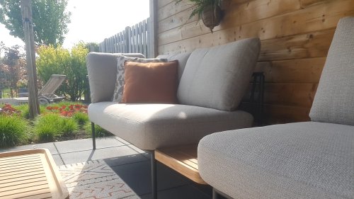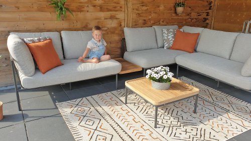 Die modulare Figaro Living Serie wird Sie überraschen. Ein moderner Rahmen mit schönen Winkeln, ein fantastischer Sitzkomfort und die raffinierte Verarbeitung der Teakholzelemente.