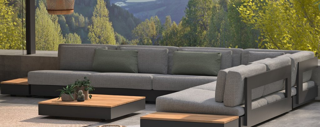Suchen Sie ein geräumiges Lounge-Set? Dann werfen Sie einen Blick auf das Ibiza -Ecksofa von 4 Seasons Outdoor. Diese Lounge ist in jeder Hinsicht großartig. Nehmen Sie als Beispiel den Aluminiumrahmen: Die extrem starke und solide Robustheit bestimmt maßgeblich die Eigenschaften dieses Sofas. Dieser ultradicke pulverbeschichtete Aluminiumrahmen ist nicht nur sehr stark, sondern auch sehr schön. Ein beeindruckender Rahmen erfordert natürlich passende Kissen. Wenn wir sagen, dass diese Kissen in Bezug auf die Dicke in der extremen Kategorie liegen, übertreiben wir nicht. Der Sitz ist wunderbar bequem und schön tief, so dass die Sommerabende noch länger dauern! Ibiza ist eines der neuesten Lounge-Sets von 4 Seasons Outdoor. Ibiza hat einen modernen Look mit seinem robusten kubistischen Aluminiumrahmen.