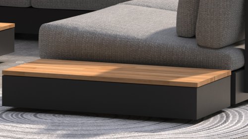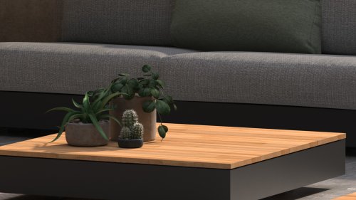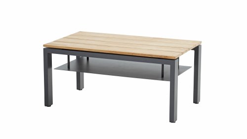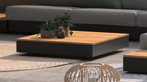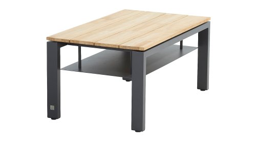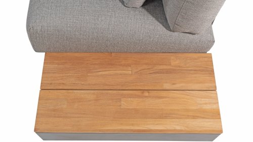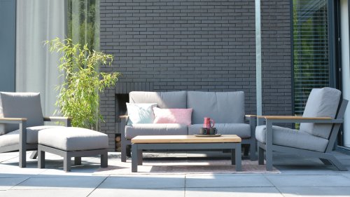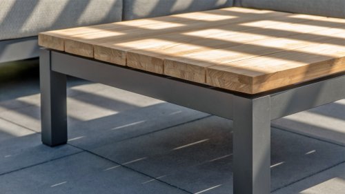 Ein großer Vorteil von Aluminium ist sein geringes Gewicht, wodurch sich der Sessel leicht bewegen lässt. Darüber hinaus rostet es nicht und erfordert wenig Wartung. Wischen Sie den Rahmen regelmäßig mit einer weichen Bürste oder einem Tuch und warmem Wasser ab, um den Rahmen sauber zu halten. Wie die Lounge hat auch der Couchtisch einen Aluminiumrahmen. Die Tischplatte besteht aus FSC-Teakholz, einem haltbaren und wetterfesten Holz. Dies macht Teakholz zu einem sehr geeigneten Material für Gartenmöbel. Da es sich um ein Naturprodukt handelt, altert Holz mit der Zeit Haarrisse verursachen. Dies ist Teil des Charmes von Teakholz und hat keinen Einfluss auf die Qualität der Lounge. Wenn Sie die ursprüngliche Farbe beibehalten möchten, ist es ratsam, Teakholz mit einem Protektor zu behandeln.