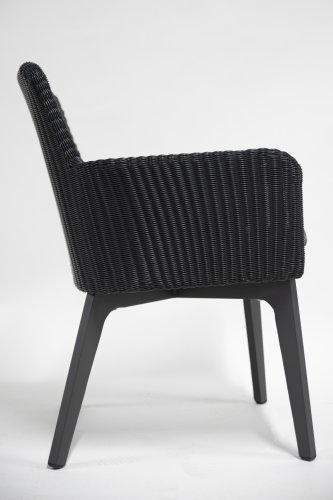 Aus hochwertigem 2mm Hularo Rund-Geflecht gefertigt ist dieser Stuhl absolut wetter- und witterungsbeständig. Es ist ein bequemer Esszimmerstuhl aufgrund seiner runden Formen. Die Olefin-Kissen passen zum Rahmen und sorgen für zusätzlichen Sitzkomfort. 4 Seasons Lisboa ist hier mit dem Louvre Esstisch einschließlich Lazy Susan angezeigt. Die Stuhlbeine aus Pulverbeschitet aluminium stehen in einem schönen Kontrast zu dem Anthrazit-farbenen Hularo Geflecht des Dining Sessels. Sie können diesen das ganze Jahr bedenkenlos im Freien stehen lassen. Die 4 Seasons Outdoor Lisboa Dining verbindet sich hervorragend mit dem Teakholz. Verantwortungsbewusst verweilen in dieseTolle Kombination mit der Teak Tisch Serie!