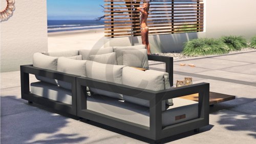 Suchen Sie ein geräumiges Lounge-Set? Dann werfen Sie einen Blick auf das Metropoilitan-Ecksofa von 4 Seasons Outdoor. Diese Lounge ist in jeder Hinsicht großartig. Nehmen Sie als Beispiel den Aluminiumrahmen: Die extrem starke und solide Robustheit bestimmt maßgeblich die Eigenschaften dieses Sofas. Dieser ultradicke pulverbeschichtete Aluminiumrahmen ist nicht nur sehr stark, sondern auch sehr schön. Ein beeindruckender Rahmen erfordert natürlich passende Kissen. Wenn wir sagen, dass diese Kissen in Bezug auf die Dicke in der extremen Kategorie liegen, übertreiben wir nicht. Der Sitz ist wunderbar bequem und schön tief, so dass die Sommerabende noch länger dauern! Metropolitan ist eines der neuesten Lounge-Sets von 4 Seasons Outdoor. Metropolitan hat einen modernen Look mit seinem robusten kubistischen Aluminiumrahmen.