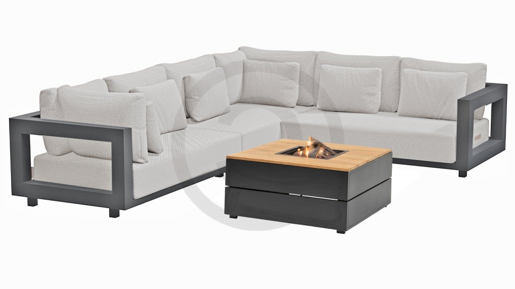 1 x CosiPure Feuertisch Alu Black/Teak 100x100xH47cm