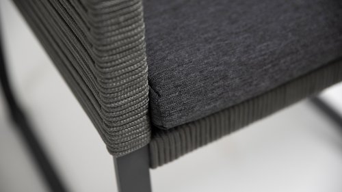 Das Rope hat die Farbe "Platinum", eine neue graue Farbe mit einem leichten Grünstich. Der Tragekomfort hat einen kleinen Glanz, der dem 4SO Ortea gartenstuhl ein luxuriöses und stilvolles Aussehen verleiht. Der Ortea Dining Gartenstuhl von 4 Seasons Outdoor hat ein elegantes, zeitgemäßes Design und strahlt Qualität aus. Die Basis der Ortea ist ein starker Rahmen, um den weiche Ropedrähte auf kreative Weise geflochten werden. Der Ortea dining stuhl ist mit einem bequemen Sitzkissen aus Olefin-Stoff ausgestattet. Das Kissen ist schmutz- und wasserabweisend, farbecht und wetterbeständig.