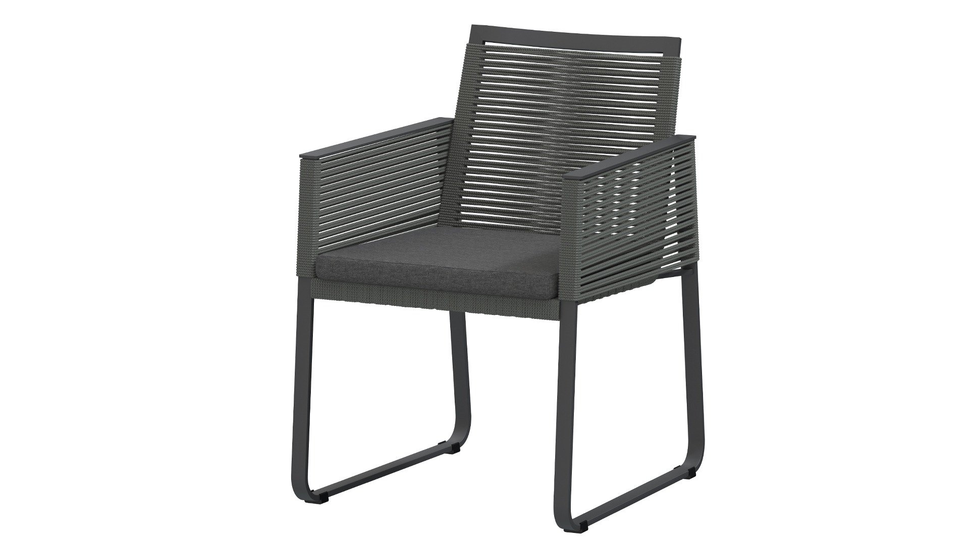 Der Ortea Dining von 4 Seasons Outdoor ist ein auffälliges Display. Nicht nur wegen seines einzigartigen Designs, sondern auch wegen der verwendeten Materialien ist der Esszimmerstuhl Ortea ein Unikat. Dieser Gartenstuhl hat einen Aluminiumrahmen und eine Rückenlehne und Sitzfläche aus Seil. Charakteristisch für diesen Gartenstuhl ist das minimalistische und schlichte Design. Der pulverbeschichtete Aluminiumrahmen ist stark und robust, die Beine gehen in die Armlehne über, die optisch ein Ganzes bildet. Die Rückenlehne steht bei diesem Rahmen im perfekten Winkel und ist daher sehr bequem. Ein Rückenkissen ist nicht notwendig, da das Seil beim Sitzen leicht federt.