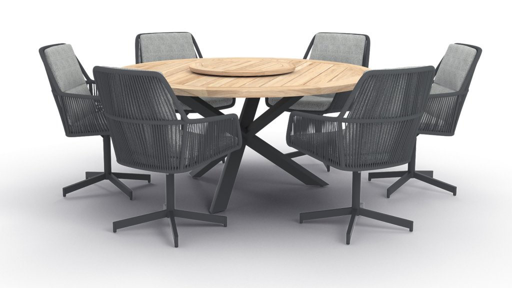 1 x Taste Prado Tisch Ø160cm Teak-Alu Anthrazit