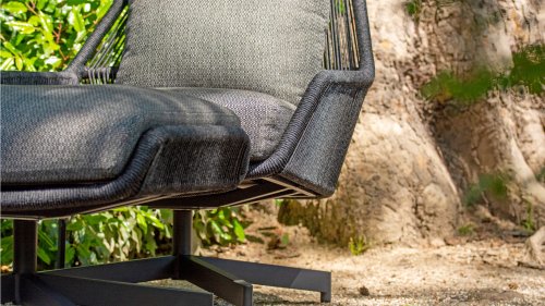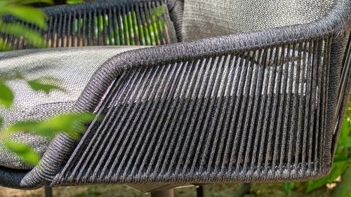 Der minimalistische Rahmen ist aus Aluminium und das Untergestell ist aus Anthrazit farbig pulverbeschichtet Edelstahl hergestellt, so dass Festigkeit und lebensdauer es mehr als ausreichend behaupt sind. Die dicken bequeme anthrazit und graue farbigen Kissen, zusammen mit der Anthrazit Rope gibt dies eine Harmonie von Farben mit Atmosphäre, die perfekt zu jedem Garten passt.