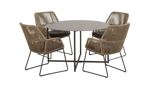 Die 4 Seasons Ramblas Rahmen wird mit natürlichen Taupe farbige Kunststoff Faser in Form von Schnüre (Rope) abgedeckt. Die Kissen kommen in einer schönen Anthrazit farbenen Olefin-Stoff. Die 4SO Ramblas Gartenmöbel verfügen über sehr bequeme Kissen mit Bezügen aus Olefin-Material, das extrem witterungsbeständig und langlebig ist. Einfach den Reißverschluss öffnen und bei 30 Grad waschen / trocknen.