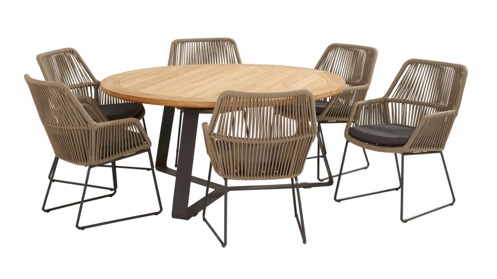 Das 4 Seasons Ramblas wurde mit viel Liebe zum Detail gestaltet. Anthrazitfarbene Kissen, die die natürliche braune Farbe der Ramblas schön zur Geltung bringen. Fließendes gewebtes Seil schafft eine einladende Sitzgelegenheit, die an einem stabilen anthrazitfarbenen Rahmen befestigt ist. Die Widerstandsfähigkeit des Rope-Materials und die dicken Kissen schaffen einen großartigen Sitzkomfort. Die Kissen haben einen Olefin-Bezug, der abgenommen und bei 30 Grad gewaschen werden kann. Dieser Stoff ist sehr witterungsbeständig und strapazierfähig. Speisen Sie stilvoll mit Ramblas!
