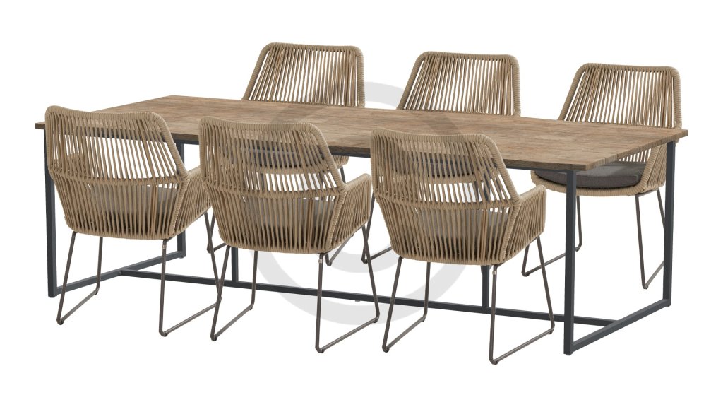 Das 4 Seasons Ramblas wurde mit viel Liebe zum Detail gestaltet. Anthrazitfarbene Kissen, die die natürliche braune Farbe der Ramblas schön zur Geltung bringen. Fließendes gewebtes Seil schafft eine einladende Sitzgelegenheit, die an einem stabilen anthrazitfarbenen Rahmen befestigt ist. Die Widerstandsfähigkeit des Rope-Materials und die dicken Kissen schaffen einen großartigen Sitzkomfort. Die Kissen haben einen Olefin-Bezug, der abgenommen und bei 30 Grad gewaschen werden kann. Dieser Stoff ist sehr witterungsbeständig und strapazierfähig. Speisen Sie stilvoll mit Ramblas!