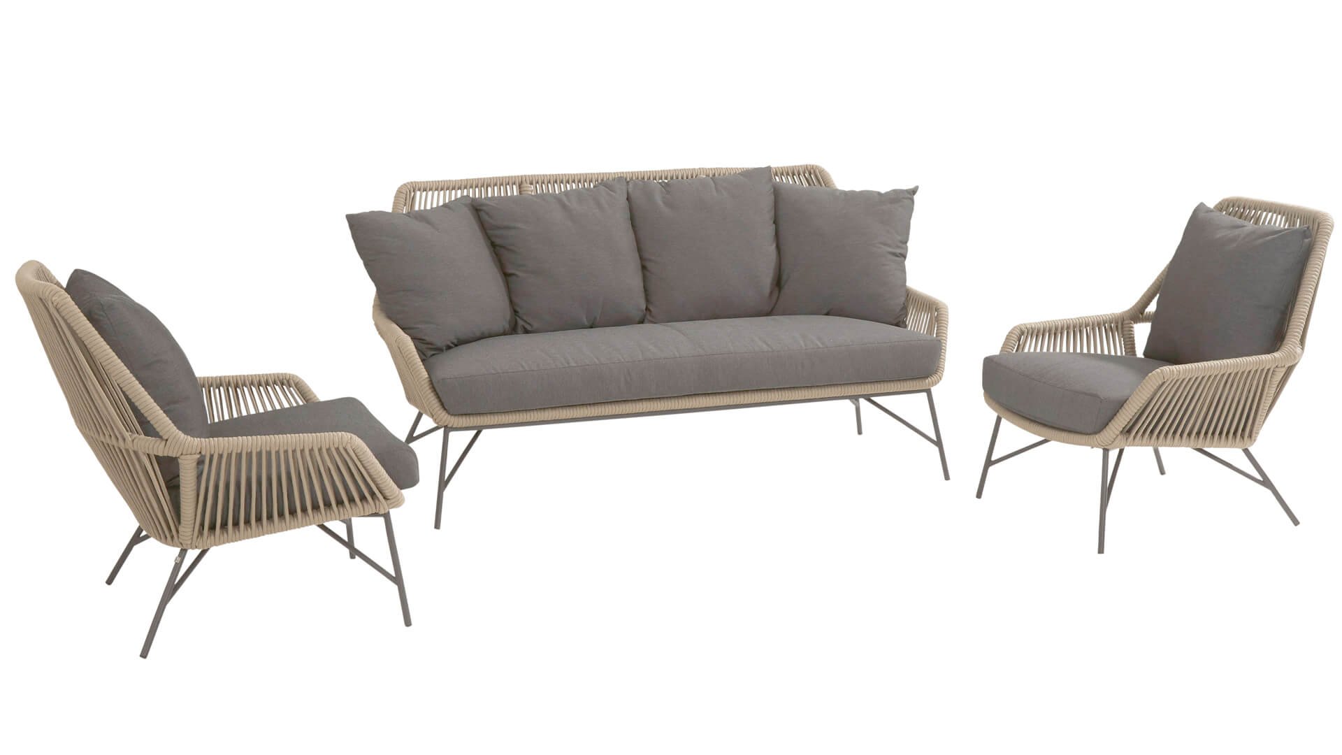 Das 4 Seasons Ramblas wurde mit viel Liebe zum Detail gestaltet. Fließendes gewebtes Seil schafft eine einladende Sitzgelegenheit, die an einem stabilen anthrazitfarbenen Rahmen befestigt ist. Die Widerstandsfähigkeit des Rope-Materials und die dicken Kissen schaffen einen großartigen Sitzkomfort. Die Kissen haben einen Olefin-Bezug, der abgenommen und bei 30 Grad gewaschen werden kann. Dieser Stoff ist sehr witterungsbeständig und strapazierfähig. Loungen Sie stilvoll mit Ramblas!