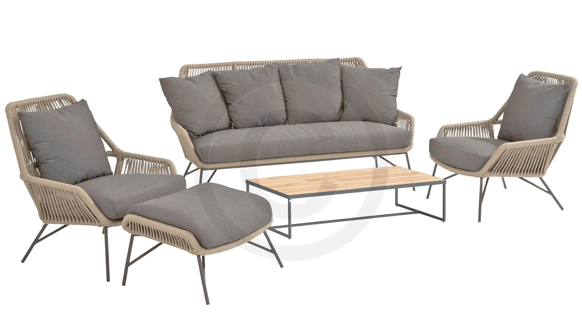 Das 4 Seasons Ramblas wurde mit viel Liebe zum Detail gestaltet. Fließendes gewebtes Seil schafft eine einladende Sitzgelegenheit, die an einem stabilen anthrazitfarbenen Rahmen befestigt ist. Die Widerstandsfähigkeit des Rope-Materials und die dicken Kissen schaffen einen großartigen Sitzkomfort. Die Kissen haben einen Olefin-Bezug, der abgenommen und bei 30 Grad gewaschen werden kann. Dieser Stoff ist sehr witterungsbeständig und strapazierfähig. Loungen Sie stilvoll mit Ramblas!