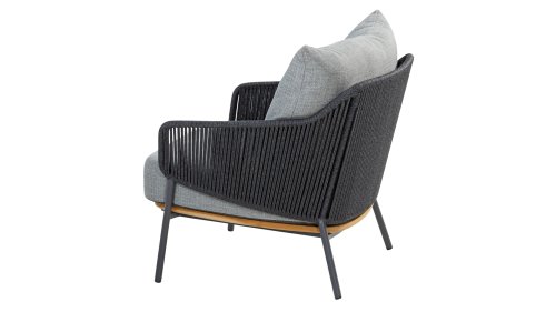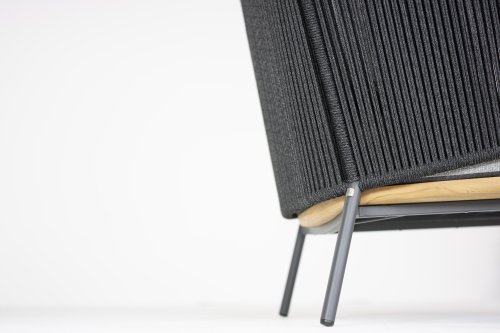Die Armlehnen runden das Konzept ab und stimmen das Design exakt mit der Rückenlehne ab. Dieser 4SO Ravello ist in Anthrazit mit Teakholz-Akzenten erhältlich. Dieser frische Look ist modern und verleiht diesem Stuhl einen luxuriösen Look. Das straff gespannte Seil erzeugt ein vertikales Muster, das besonders an der Stuhllehne sichtbar wird. Die passenden Kissen in der gleichen Farbe sind wunderbar dick und garantieren viele entspannte Stunden. Dieser Loungesessel hat auch Teakholzbeine, was sich sehr gut mit der hellgrauen Farbe des Seils (Rope) und der Kissen verbindet. Pflegen Sie das Teakholz regelmäßig mit einem unserer Pflegemittel, um die Farbe lange zu erhalten und seine Lebensdauer zu verlängern. Alles in allem ein schöner, bequemer und freundlicher Loungesessel. Dank des passenden Hockers können Sie dieses 4Seasons Ravello living genießen!