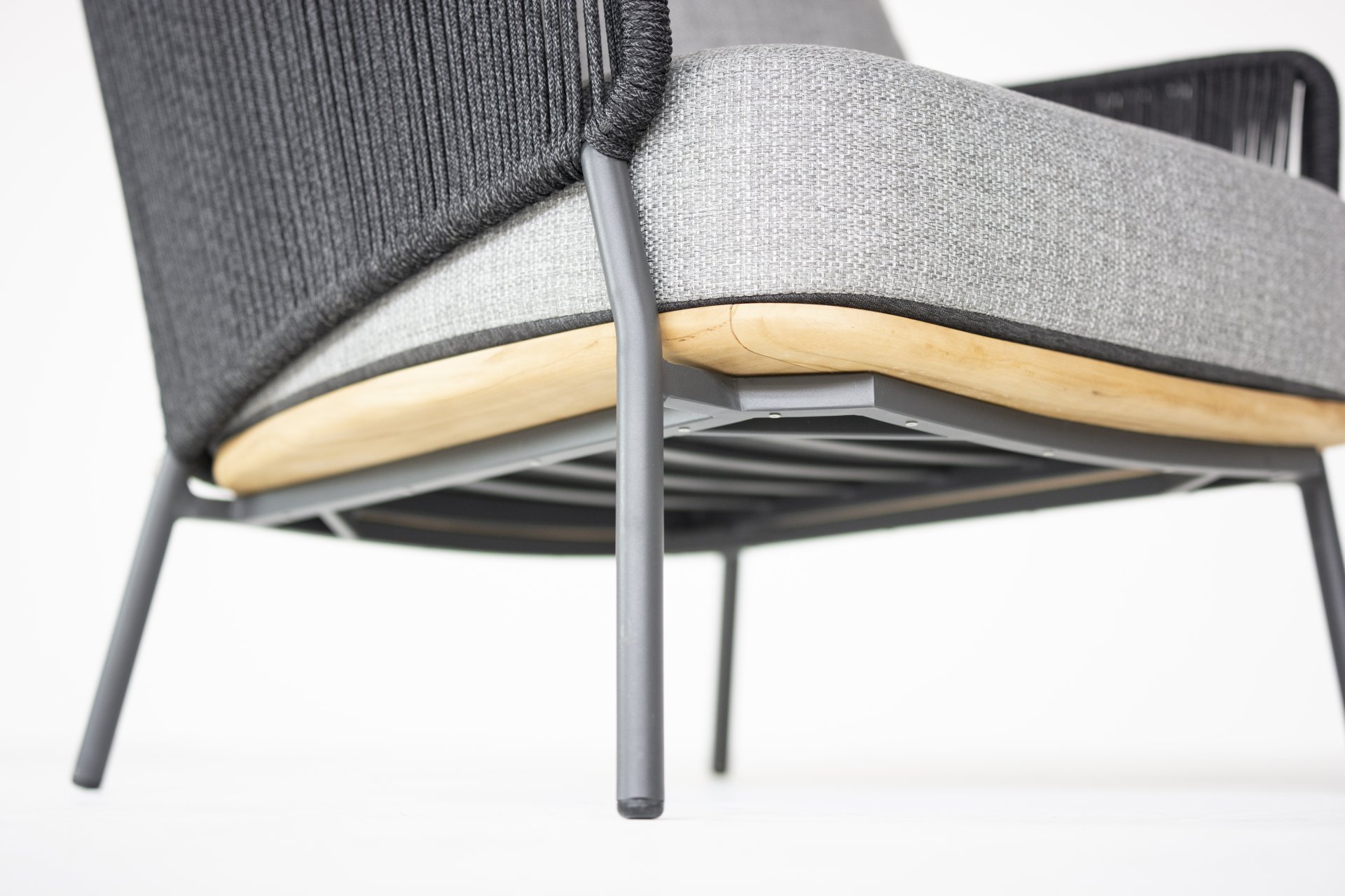 Genießen Sie das Leben im luxuriösen 4SO Ravello-Set. Eine Kombination aus Seil und Teakholz ergibt eine stilvolle Lounge-Serie. Genießen Sie die Natur in vollen Zügen mit den speziellen Ravello-Möbeln. Da die Rückenlehne weit nach oben reicht, sitzen Sie natürlich und bequem. Wie Sie es von 4 Seasons Outdoor gewohnt sind, ist der Gartenstuhl Ravello komplett aus wetterfesten Materialien gefertigt. Der Sitz des Stuhls besteht aus schönem geflochtenem Seil in Anthrazitfarbe. Das Seil ist ein starker Polyesterfaden und fühlt sich sehr angenehm an. Das Comfort Anthrazit Sitzkissen besteht aus Olefin.