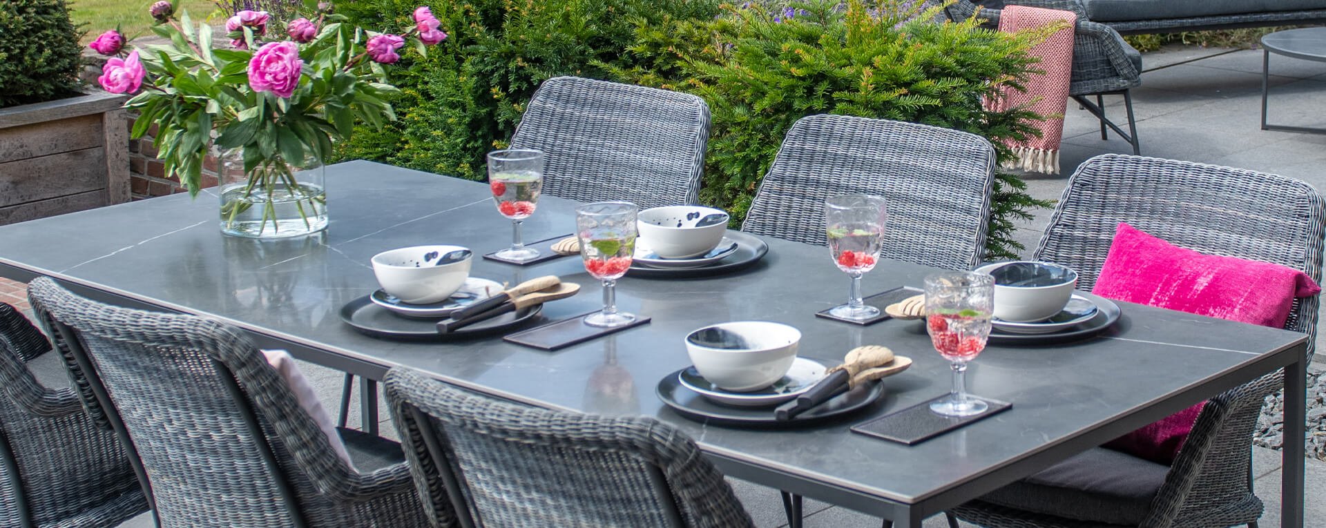 In unser 4 Seasons Outdoor Samoa Serie sind die Gartenmöbel minimalistisch im Design mit funktionaler Schlichtheit und elegantem Design. Die schönen Rahmen sind aus Aluminium und die Beinen sind aus Edelstahl und haben eine anthrazit farbigen Pulverbeschichtung. In diesem Rahmen ist ein wunderschöner 2mm Ø dunnen Faser mit einem schicken und komfortablen naturlichen "feel andTouch" (Ecoloom) geflochten. Die runden Formen halten dieses moderne Design in Balance.