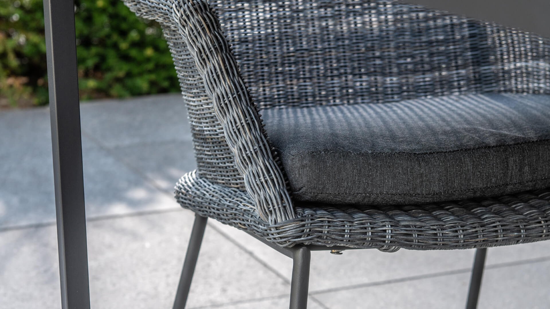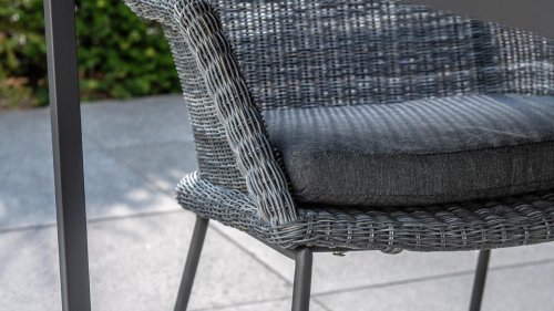 Dieses wunderschön gestaltete Diningset von 4 Seasons Outdoor bietet ein minimalistisches Design mit schönen Details. Die anthrazit Farben in Kombination mit dem Chacoal oder Anthrazit farbigen Geflecht schafft einen modernen Stil mit natürlicher Note. Die passenden Sitzkissen bieten einen angenehmen Komfort, so dass Sie sich in Ihrem eigenen Garten entspannen können. Dank der Kombination von hochwertigen Materialien ist dieses Gartenset witterungsbeständig und wartungsfreundlich.