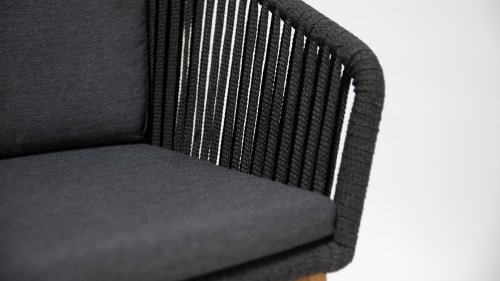 Der minimalistische Rahmen ist aus Aluminium hergestellt, so dass Festigkeit und lebensdauer es mehr als ausreichend behaupt sind. Die bequeme anthrazit farbigen Sitz-und Rückenkissen, zusammen mit der Mid Grey Rope, fertig gemacht mit robusten Teakholzbeinen....gibt dies eine Harmonie von Farben mit ländliche Atmosphäre, die perfekt zu jedem Garten passt.