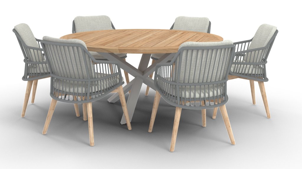 1 x Taste Prado Tisch Ø160cmTeak-Alu Frost Grey
