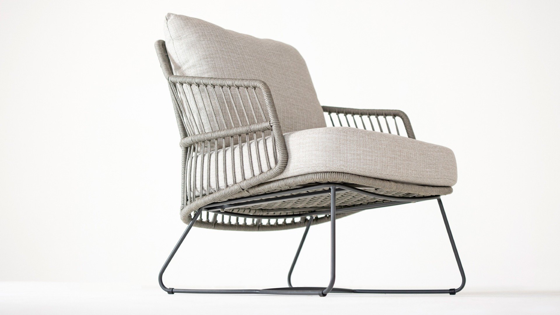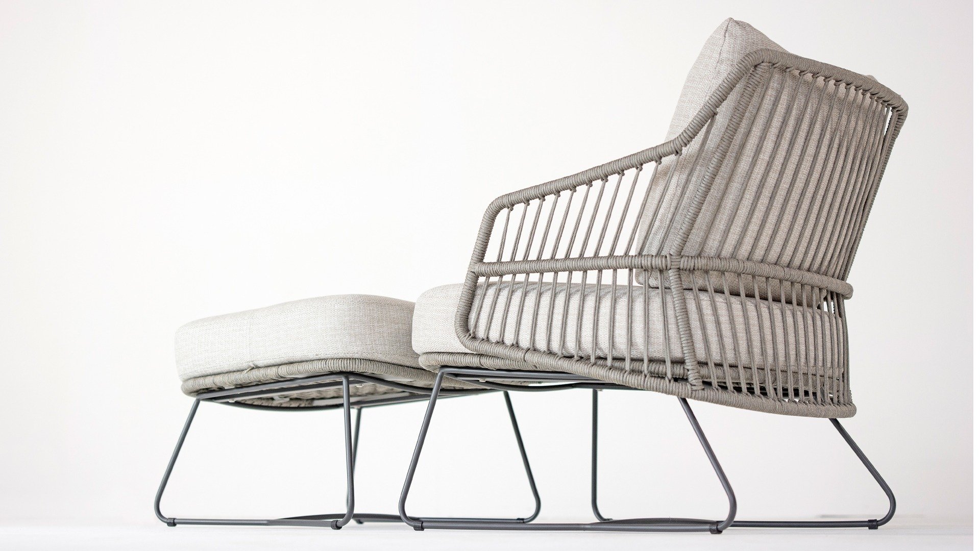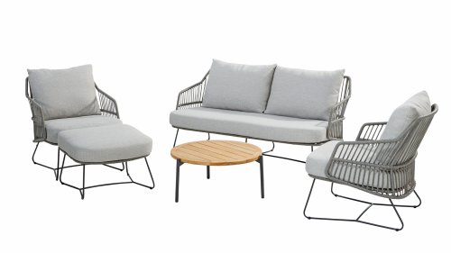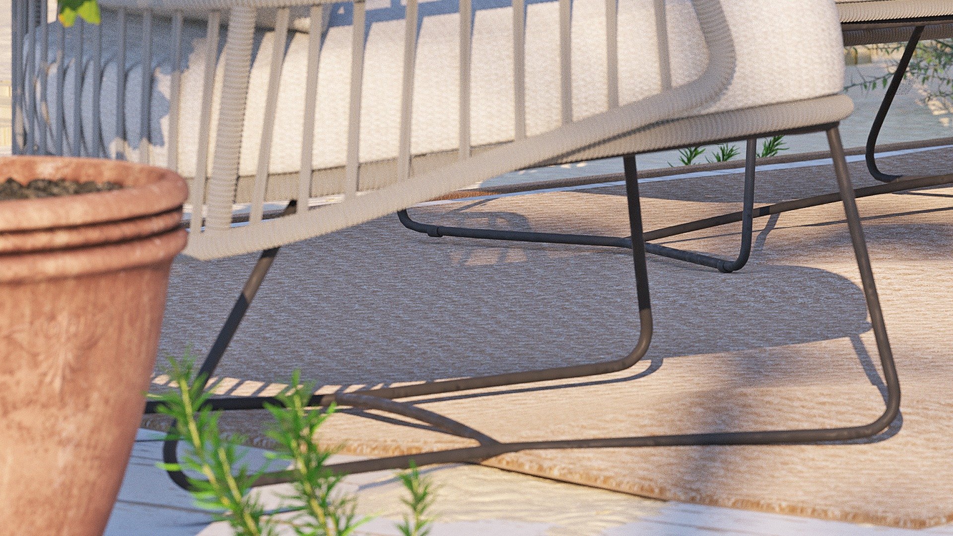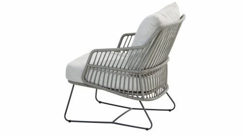 Der minimalistische Rahmen ist aus Aluminium und das Untergestell ist aus Anthrazit farbig pulverbeschichtet Edelstahl hergestellt, so dass Festigkeit und lebensdauer es mehr als ausreichend behaupt sind. Die dicken bequeme anthrazit und graue farbigen Kissen, zusammen mit der silver grey Rope gibt dies eine Harmonie von Farben mit Atmosphäre, die perfekt zu jedem Garten passt.