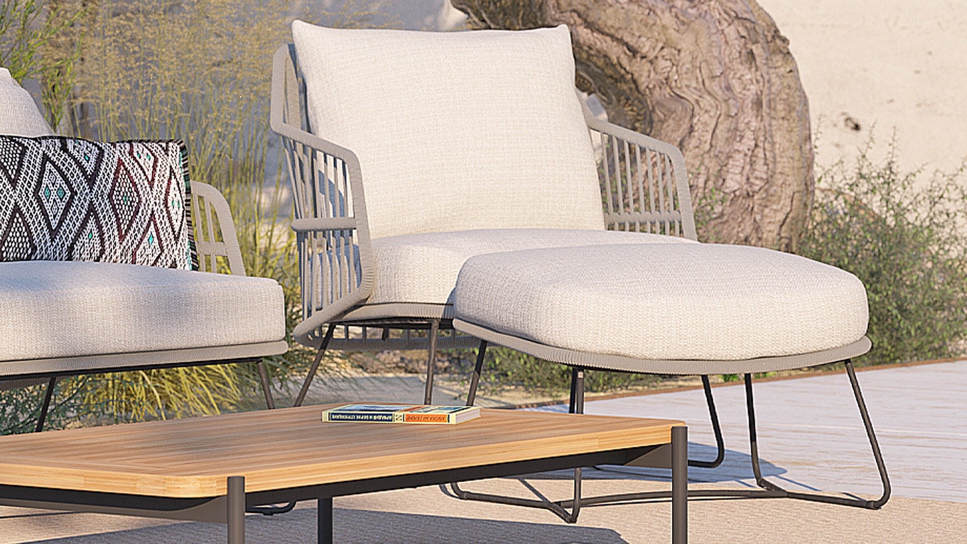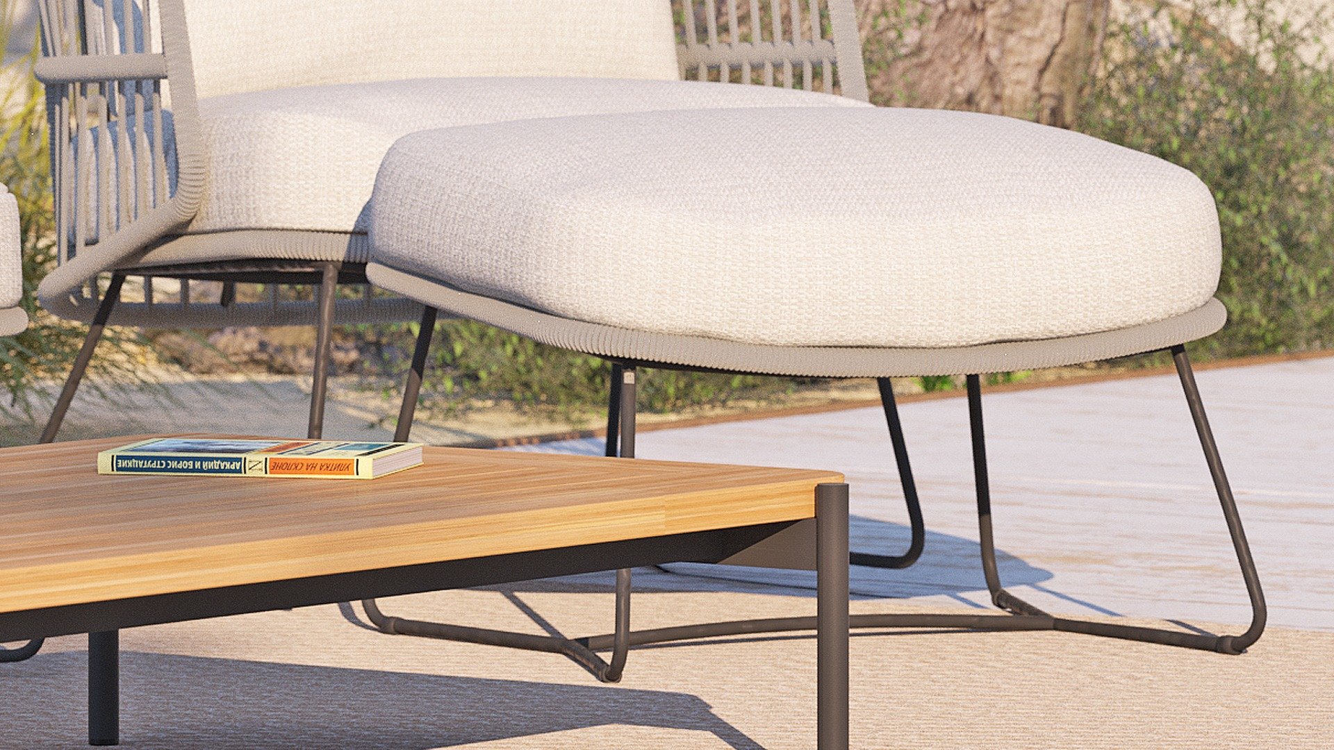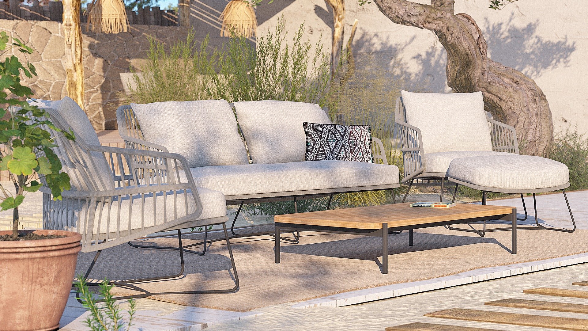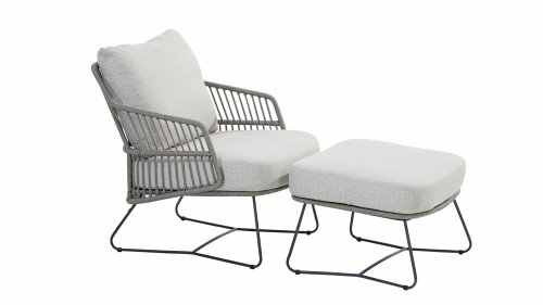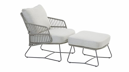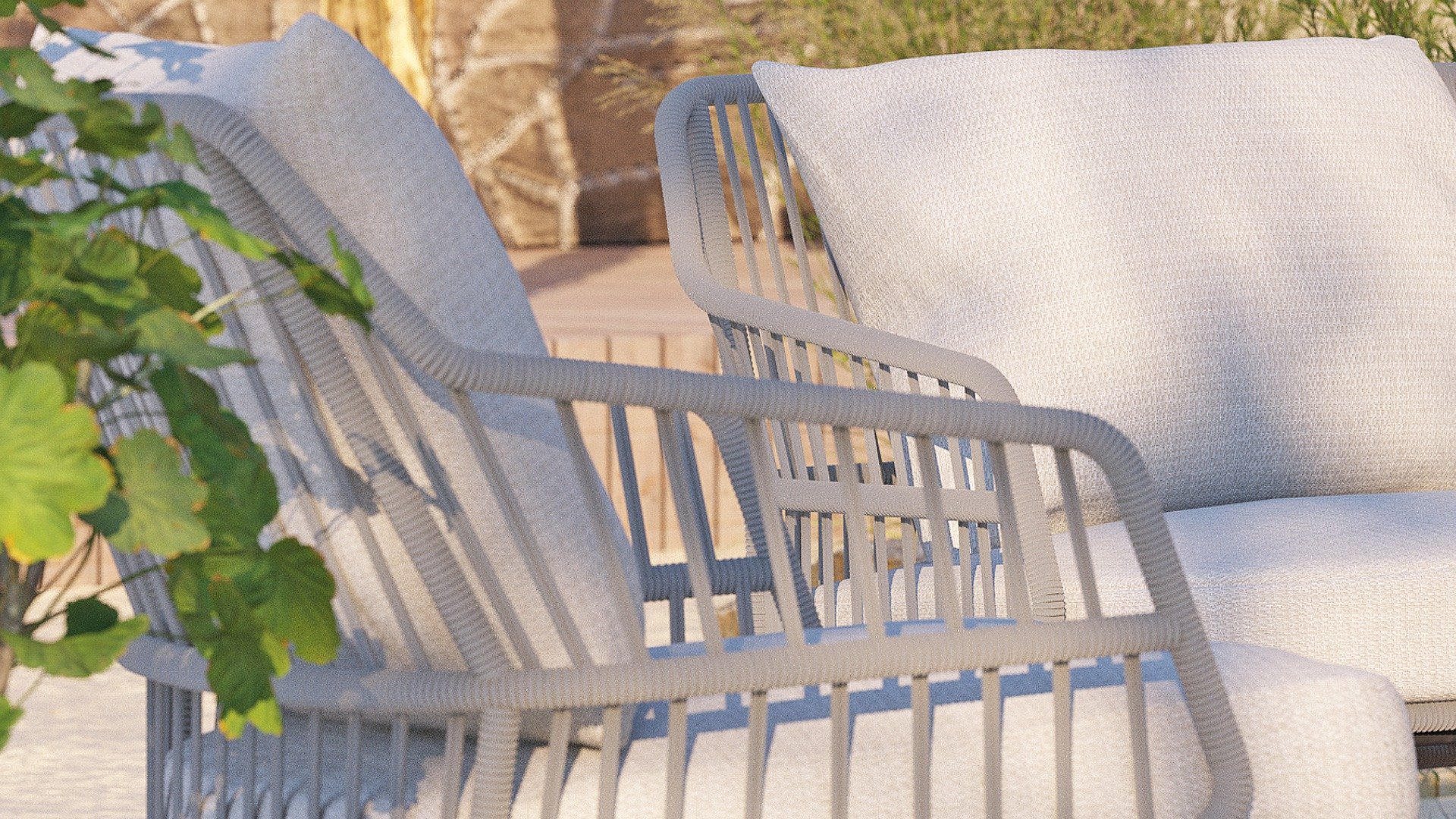 Der minimalistische Rahmen ist aus Aluminium und das Untergestell ist aus Anthrazit farbig pulverbeschichtet Edelstahl hergestellt, so dass Festigkeit und lebensdauer es mehr als ausreichend behaupt sind. Die dicken bequeme anthrazit und graue farbigen Kissen, zusammen mit der silver grey Rope gibt dies eine Harmonie von Farben mit Atmosphäre, die perfekt zu jedem Garten passt.
