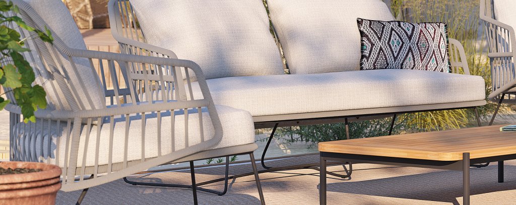 Die 4Seasons Sempre Rahmen wird mit natürlichen Anthrazit farbige Kunststoff Faser in Form von Schnüre (Rope) abgedeckt. Die Kissen kommen in einer schönen anthrazit und light grey farbenen Olefin-Stoff. Die 4SO Sempre Gartenmöbel verfügen über dicke und sehr bequeme Kissen mit Bezügen aus Olefin-Material, das extrem witterungsbeständig und langlebig ist. Einfach den Reißverschluss öffnen und bei 30 Grad waschen / trocknen.