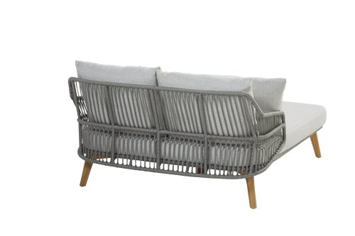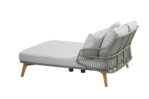 4 Seasons Outdoor Sempre Daybed: Eine Zwei-Personen-Liege mit bequemen Kissen, handgewebtem Seil auf der Rückseite und Teakholzbeinen, die sich problemlos mit einem Teaktisch kombinieren lässt!